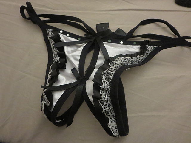 足元に落ちていたゴールドのパンティを拾って
