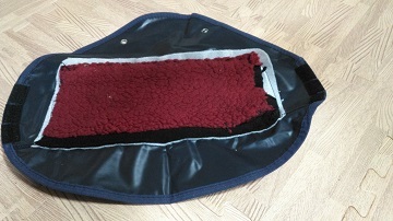 カバー、内側にボア生地を縫い付ければいいだけの話。うまいとは決して言えない
