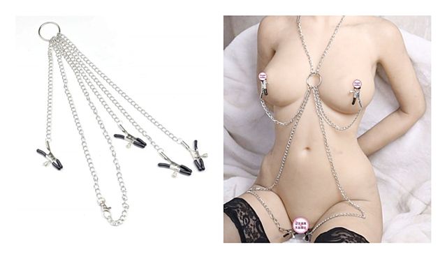 おお、乳首&ラビアクリップとチェーン。サビアクリッピの根本に小さな