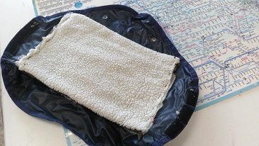 で、これが完成品。自転車につける時はこれが内側。外部は普通のハンドルカバー
