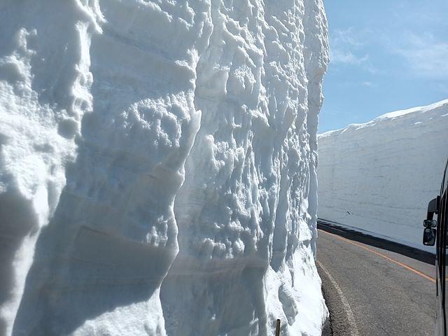 室堂から3015mの立山を貫き通したトンネルを大観峰までトロリーバスで10分,