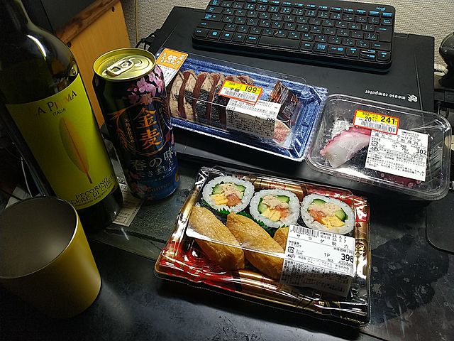 下道も使って安いルート選択しているので時間がかかりましたが、実家を朝10時出発、清掃センターでゴミ出し終わって帰ったら午後5時。スーパーで『ご褒美』の海鮮2種(当然割引シール付き)と助六寿司を買って今夜の夕食。しっかり飲んで早寝して、また明日早朝から作業再開です!