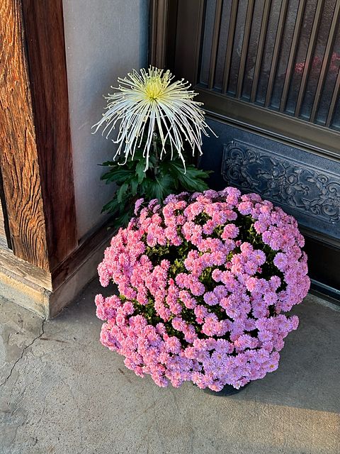 今日も日中は暖かくいい一日でした。 近所に住む義父の弟伯父さんが菊の鉢植えを玄関前に置いて行きました。