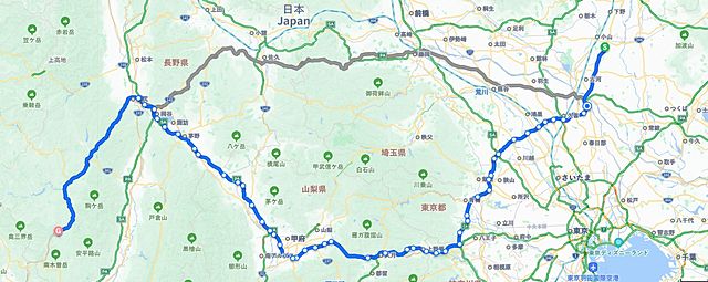 金曜から一泊で関東甲信めぐり旅をしてきました。クルマでの移動なので昨夜のお宿は幹線道路沿いに点在するコンテナホテルの一室、今回が2回目の利用でした。昨日中にほぼ用事は済ませているので、今日は移動が主なミッション。写真は帰りのルートを図示したものです。今回一瞬ですが「茨城県」もかすりましたので、関東甲信のくくりでいうと通ってないのは千葉県のみかな。神奈川も一瞬ですけどね。