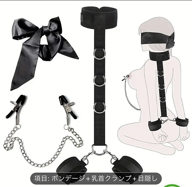 全裸になったら写真のような器具付けて乳首クリップつけられて両手拘束された