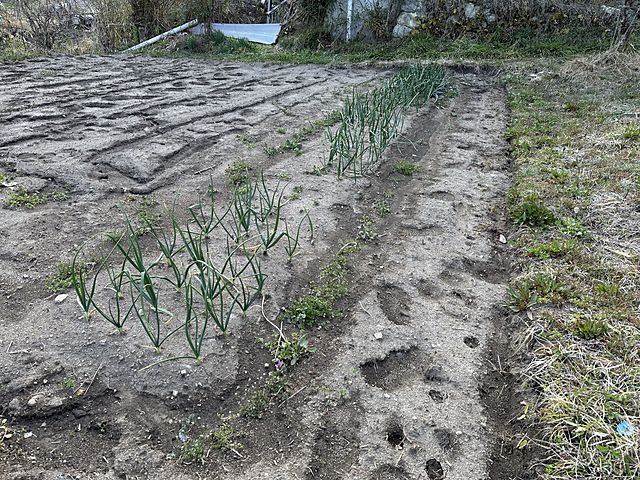 写真は1周間前に撮った玉ねぎの様子。だいぶん葉っぱがしっかりしてきました。そこそこ大きな球になってくれるようにまた追肥と草取りしてあげないとです。まだ収穫までの先は長いよ。