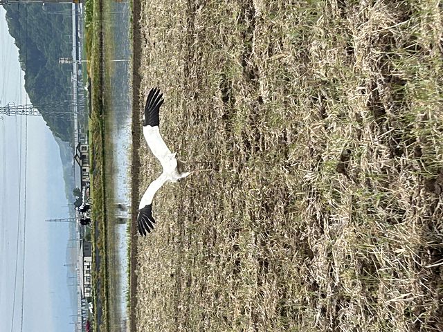 今日も迷鳥のソデグロヅルは田んぼにいます 夏まで持つのだろうか?