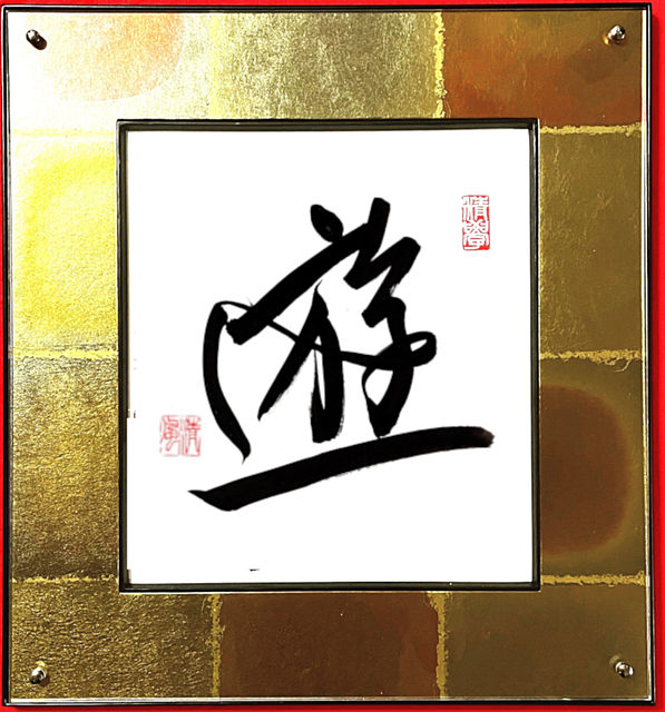 ①あそぶ。楽しむ。「遊興」「遊芸」 ②勉学などのために他国へ行く。旅をする。「遊学」「漫遊」 ③自由に動きまわる。「遊軍」「遊星」 ④使われずにいる。「遊休」「遊民」 ⑤つきあう。「交遊」 ⑥あそび。ゆとり。よゆう。