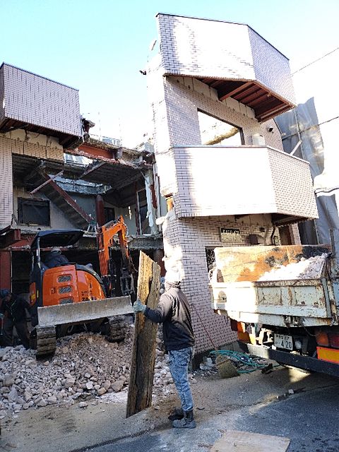 朝から近所で解体工事、 我が家の中古住宅価値は 土地代マイナス300↮400万円かなと考えています、この家では土地代マイナス500ー600万円かな?