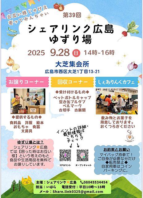 『十零月二十六日』は『大芝集会所』で『シェアリンク廣島』の『生活物資提供会』