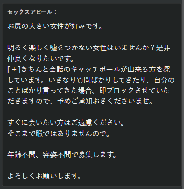 プロフって女性が見て探す用ではなくて、やり取り前の確認用かなぁって思いました。