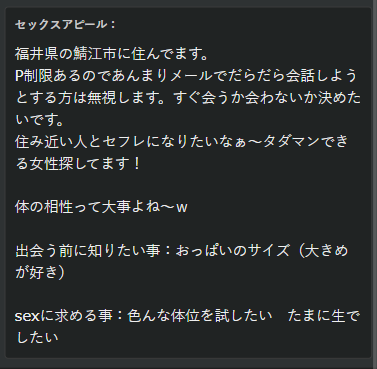 色んなプロフィール見れて楽しいです いくら身バレしないからといってもさすがに露骨なことは書けないです これからも機会があれば投稿してくださいね
