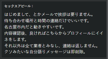 まぁ、金が無いんだろうけど、「女の人はだれでも俺とエッチしたがってる」て思ってるのか、その根拠がないんじゃねぇ。オイルマッサージ(性感込)経験10年とか書いときゃ、まだ連絡あるかも。