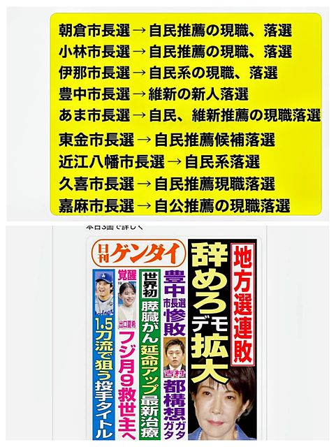 潮目が変わった!自民党 市長選7連敗!
